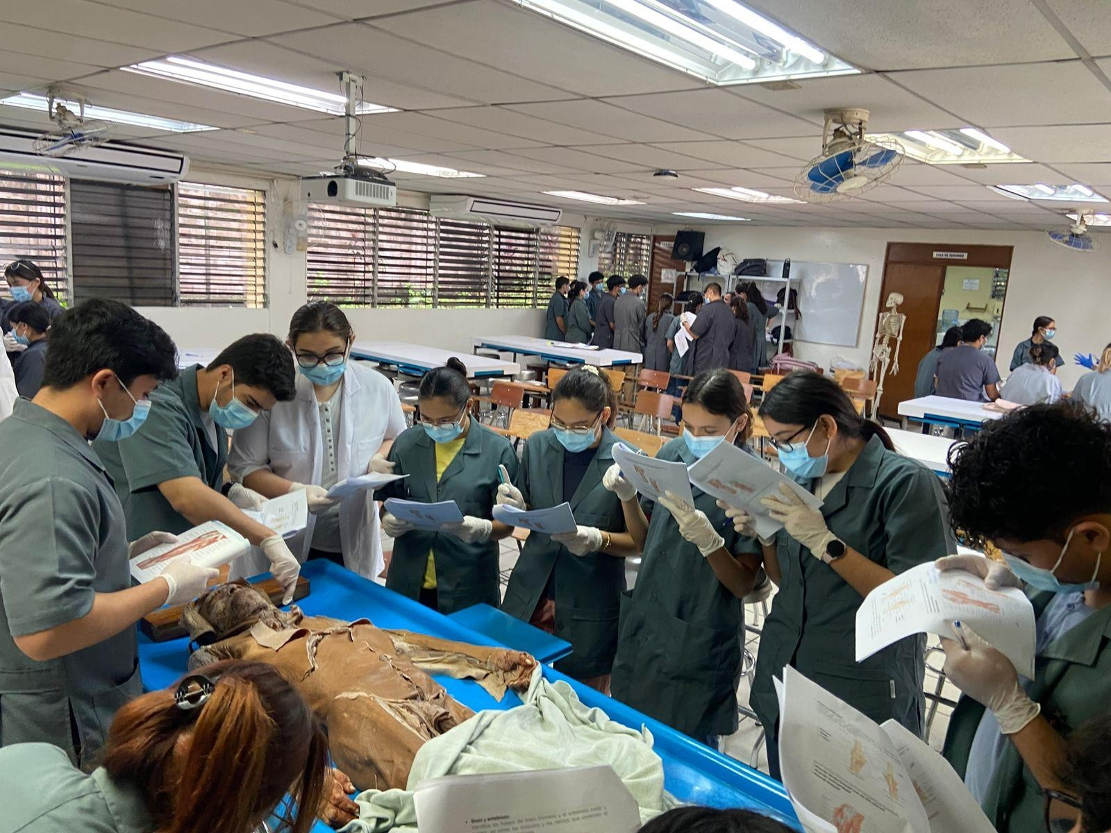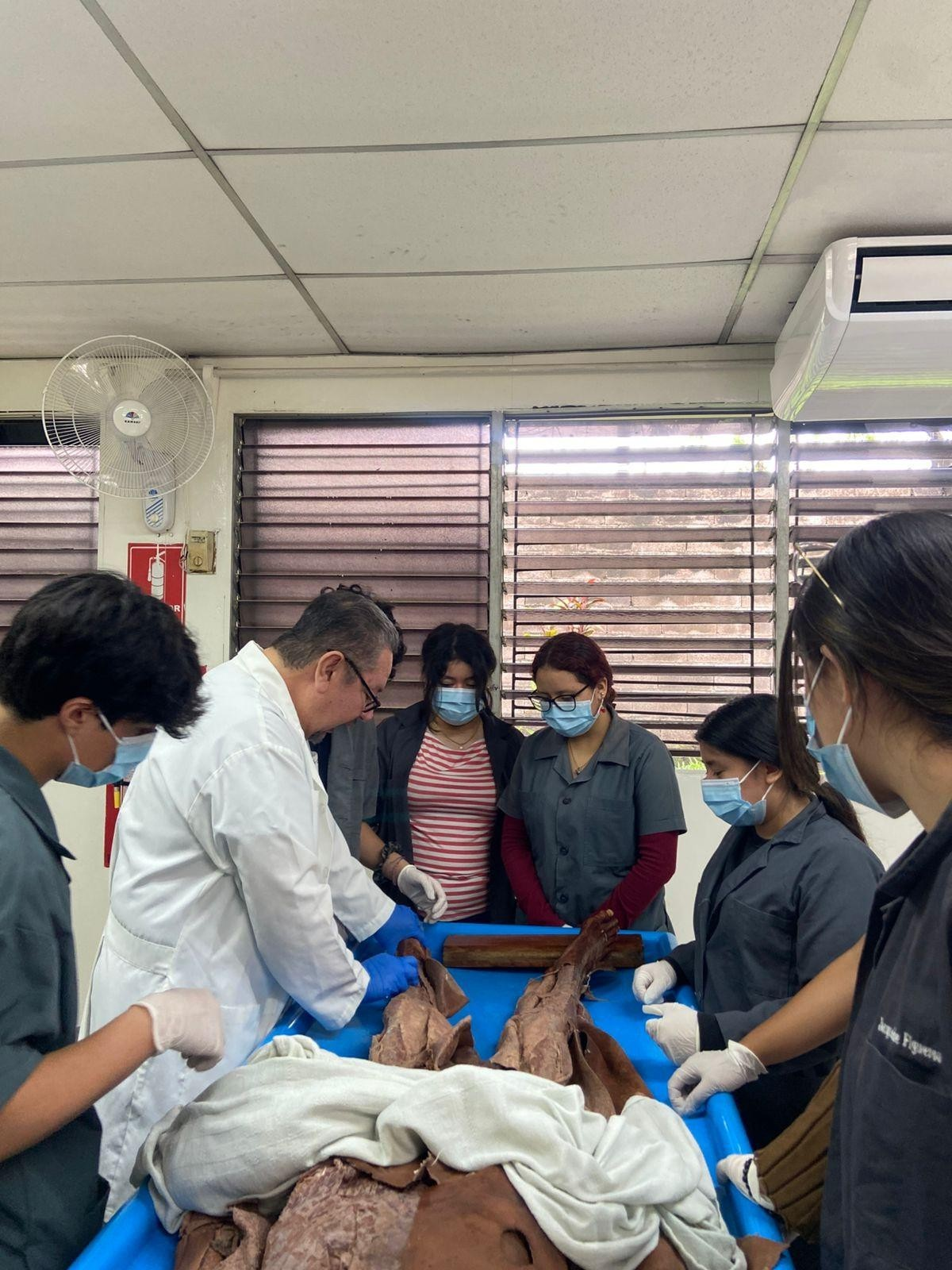 Los estudiantes tuvieron acceso a material anatómico como cadáveres, piezas anatómicas y un manual con la información necesaria para orientarse durante las prácticas. Además, se les proporcionaron guantes, manuales de laboratorio y un refrigerio para asegurar un entorno adecuado de aprendizaje.
