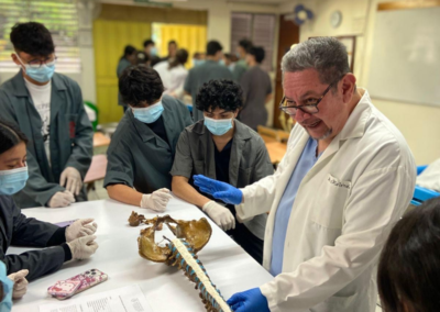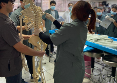 Sin embargo, a medida que avanzó el taller, se notó una transformación progresiva en la actitud de los asistentes. La metodología práctica, el acompañamiento personalizado de docentes e instructores, y el uso de material anatómico real, permitieron que los estudiantes no solo comprendieran mejor los conceptos, sino que también empezaran a aplicar la terminología anatómica con seguridad y propiedad. De esta manera, dejaron de limitarse a la simple memorización de términos para comenzar a entender la estructura y funcionalidad del cuerpo humano de manera integral. Al finalizar la jornada, los rostros de intimidación habían sido reemplazados por expresiones de entusiasmo y curiosidad, con un renovado interés por profundizar en el estudio de la anatomía.