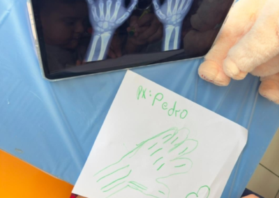 Se logró reducir el miedo al entorno hospitalario a través del juego simbólico (explicación de procedimientos médicos) con peluches, fomentando una actitud más positiva hacia las visitas médicas. Los niños demostraron alegría y entusiasmo durante toda la jornada, lo que fue interpretado por el personal y los organizadores como un signo claro de aceptación y bienestar emocional.